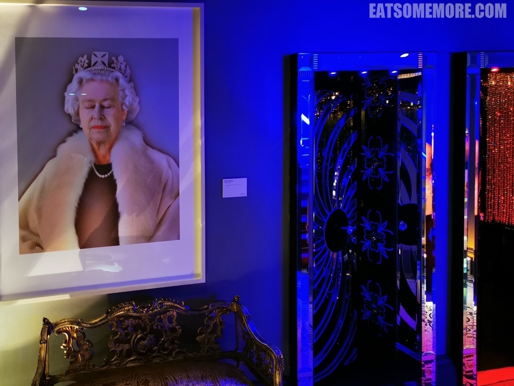 伦敦市中心充满艺术气息的米其林三星法式餐厅,入口处挂着钻尘版的“生命之轻”女王肖像,原型是由英国光绘艺术家克里斯 (Chris Levine) 无意中拍下的女王闭目养神的安详一幕。
