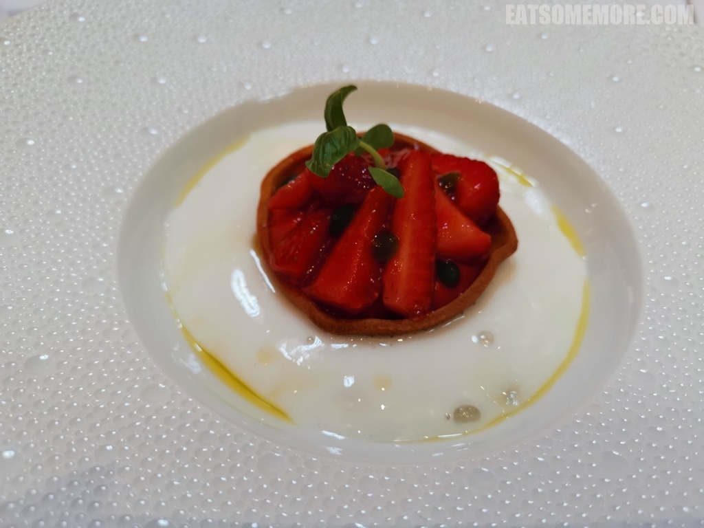 主甜点是马斯卡邦尼奶酪上的薄荷草莓挞,清新酸甜。