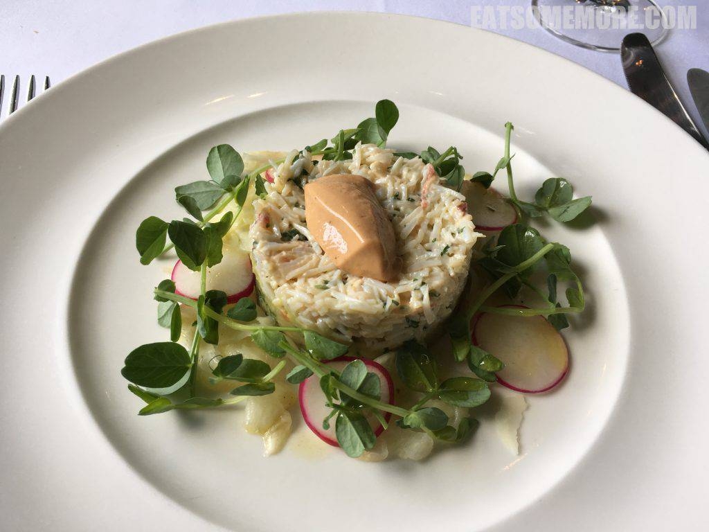 英国的夏天,凉凉的海边,将这样的温度、气息和感觉入菜,最恰当莫过蟹肉沙拉——取康郡面包蟹肉佐以蟹黄慕斯、豌豆苗、甜茴香、樱桃萝卜和牛油果泥。沙拉当中既有海味、鲜味,又有清香、奶香,一夏的回忆都在这道令人心旷神怡的菜里啦!