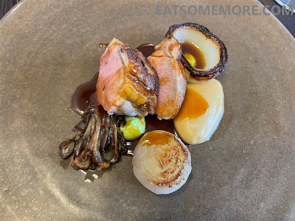 本地农场羊肉煎得粉粉嫩嫩以百里香酱调味,肉汁浸润着鲜香的舞茸和甜糯的焦糖粉红洋葱,完全是一道暖心美味。