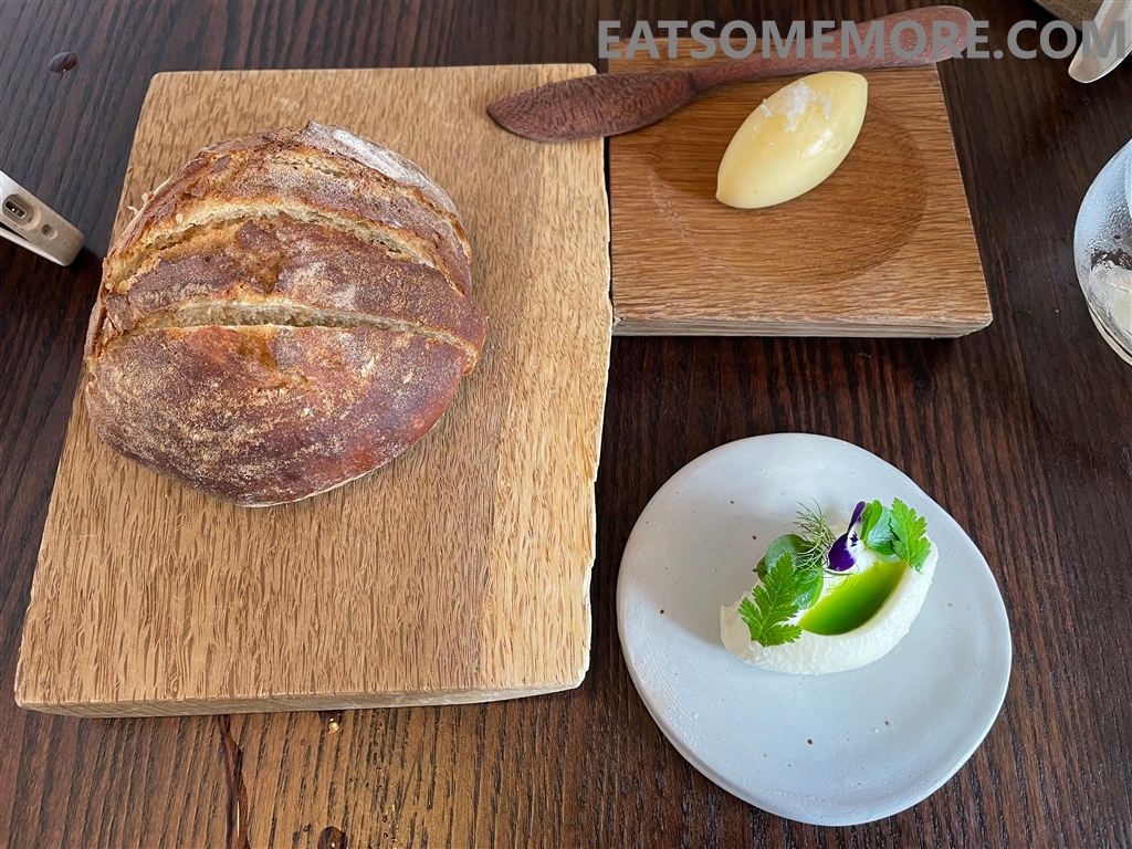 温热的酸种面包搭配盐味黄油和香草羊奶酪,看似平平无奇,实则别出心裁。