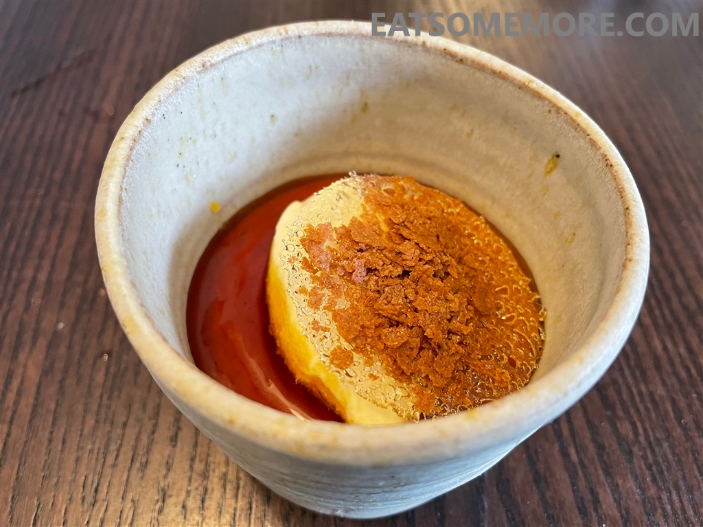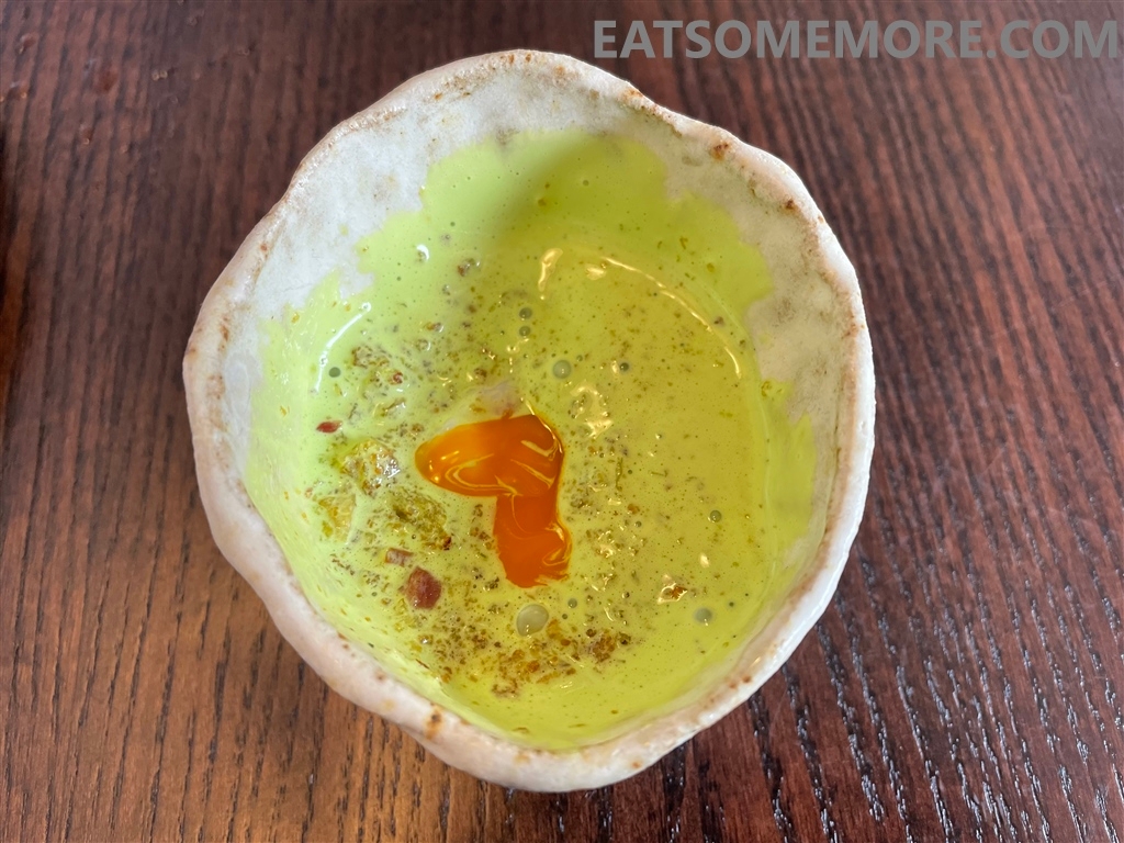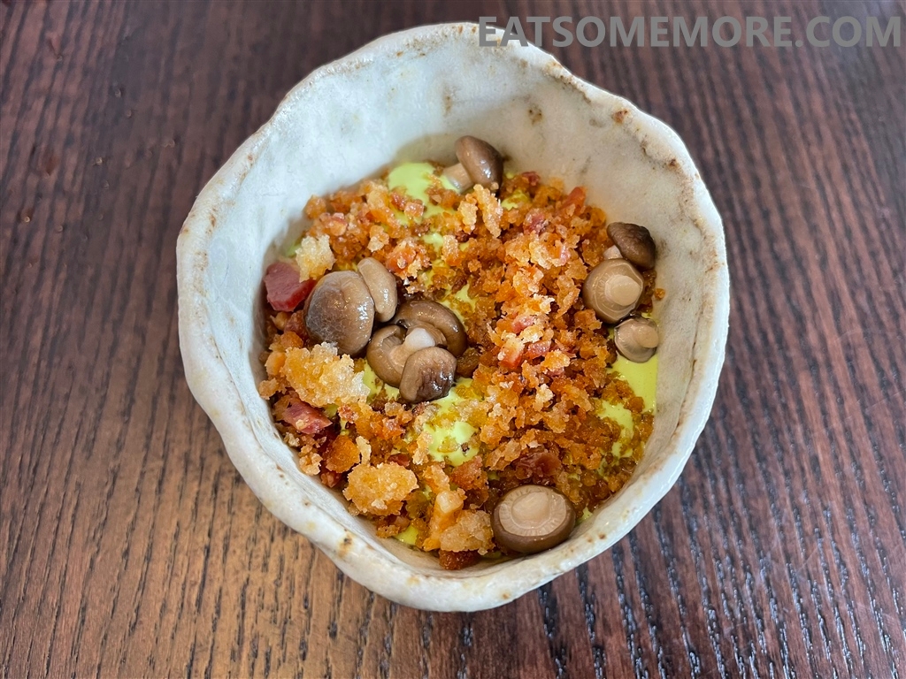 搅开时发现汤里还藏了颗半熟的阿林顿白羽鸡蛋黄,一勺入口,层次丰富的田园香气充斥口鼻。