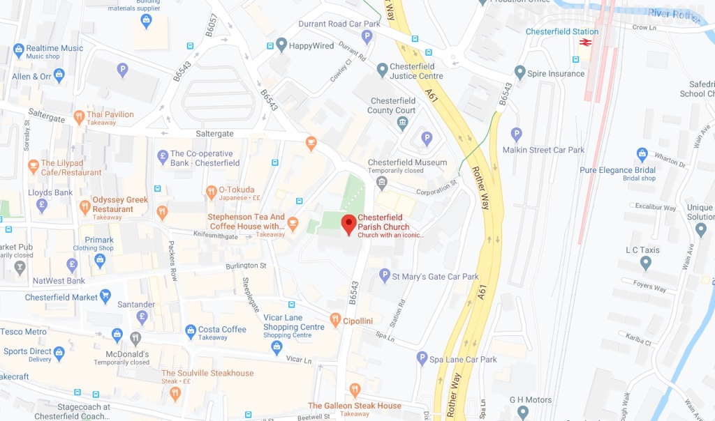 切斯菲尔德教区教堂 (Chesterfield Parish Church) 是一座主要建于十四世纪的英国圣公会教堂。它不仅是德比郡最大的教堂,更以其令人惊叹的螺旋扭曲尖顶著称,是一级保护建筑。