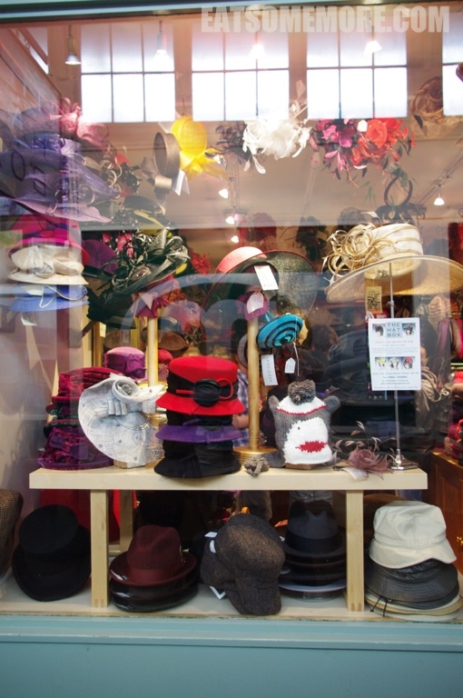 商店的橱窗里陈列这色彩斑斓颇具英伦特色的帽子。