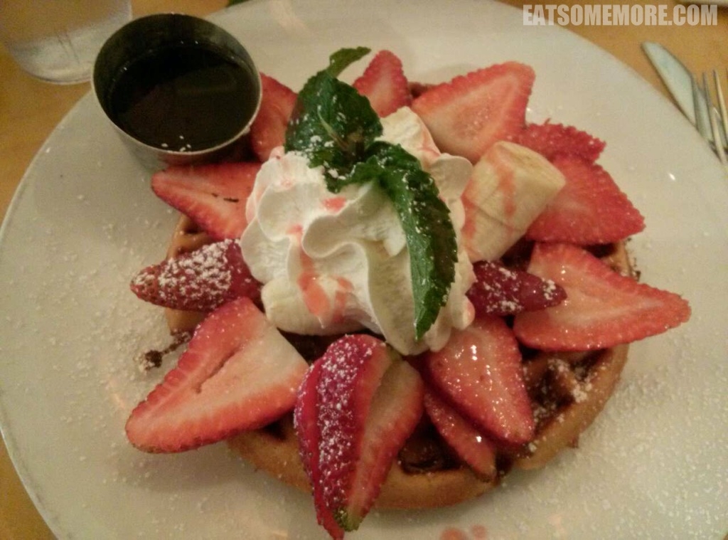 草莓香蕉奶油华夫饼,搭配新鲜薄荷叶子,甜蜜清新。