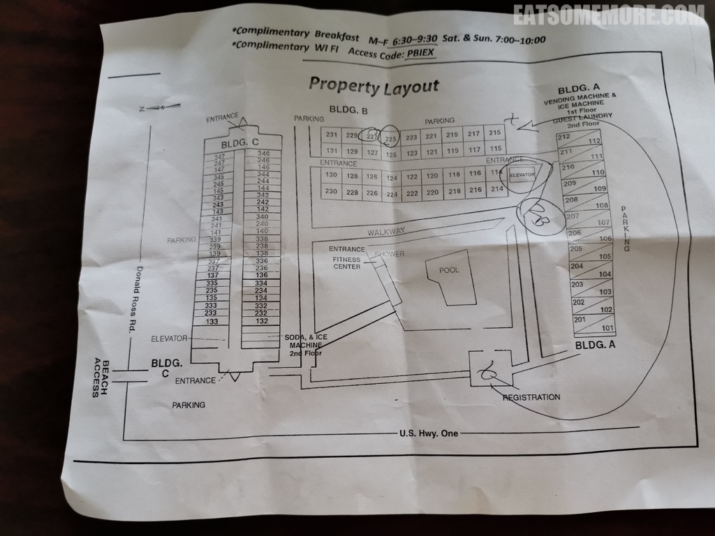 酒店的前台还给了我们一份地图,方便我们把车停在离房间最近的地方。