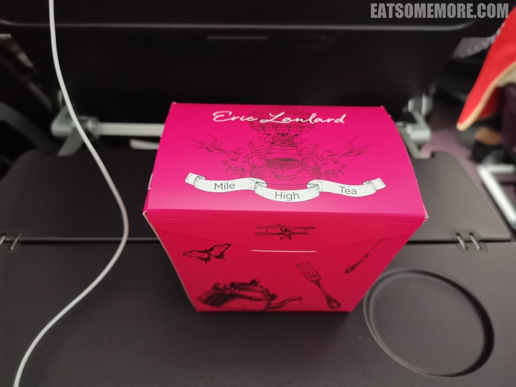 除了标准餐食,维珍航空还提供英式下午茶。桃红色的盒子,太可爱了。